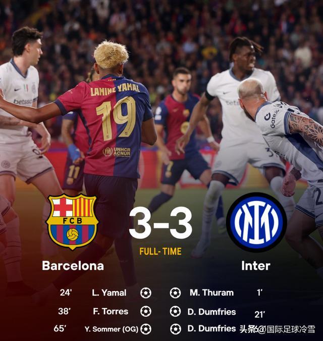 欧冠赛场上,国米两回合对阵巴萨,都是如此。首回合国米21分钟就2球领先,最终打成3-3平。